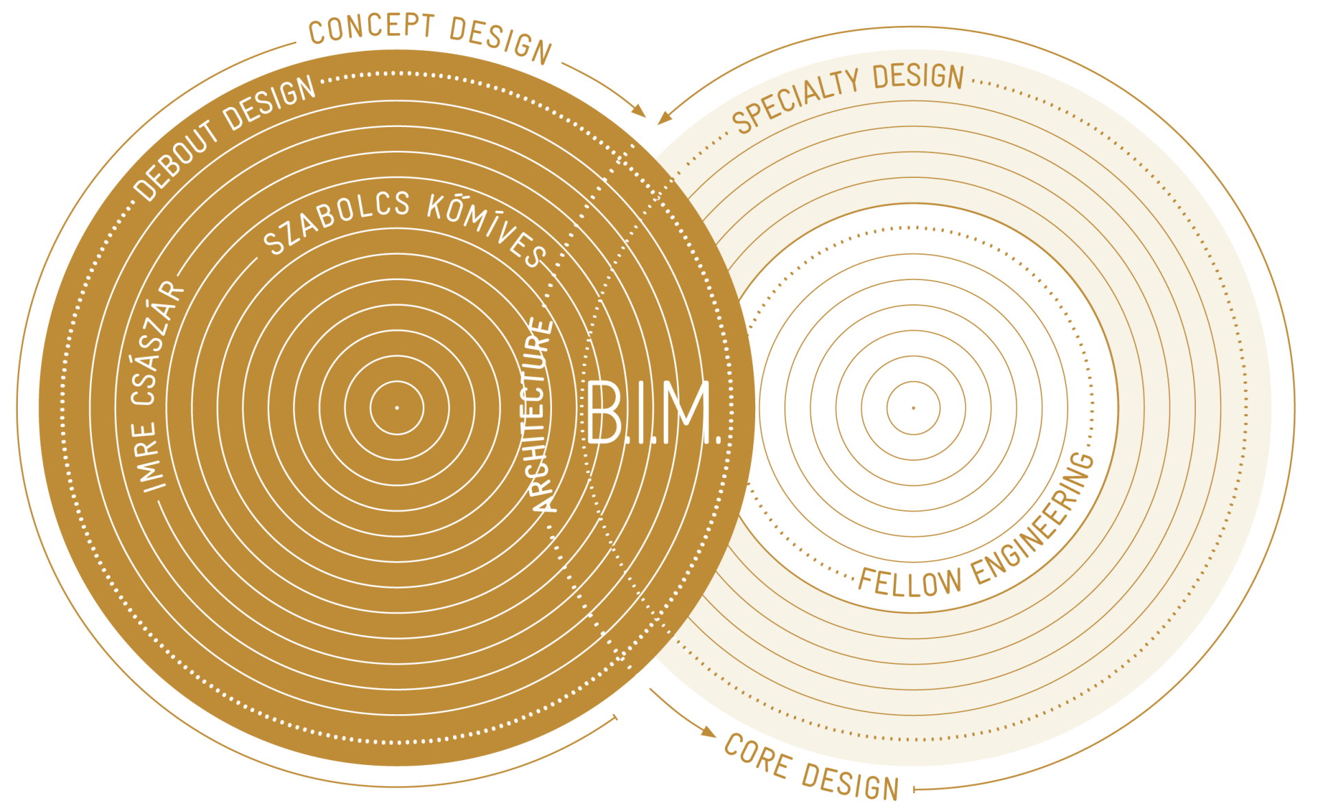 DEBOUT is a partnership of architects, led by Szabolcs KŐMÍVES and Imre CSÁSZÁR, based on the revelation that high-end architecture is only viable with deep atechnical and engineering background. Their ars-poetica is perfectly expressed by the French word Debout, having paralell meanings, like standing firmly on the ground while heading upwards. This binary stance helps keeping the focus on architectural sensibility and innovativeness, while firmly enduring to the viability in engineering solutions. At Debout, architects and engineers work within a so-called Design Cloud*, which is a link between the concept phase1 and the detailed, or core design2. While shaping a future building or plot layout at the very first stages,